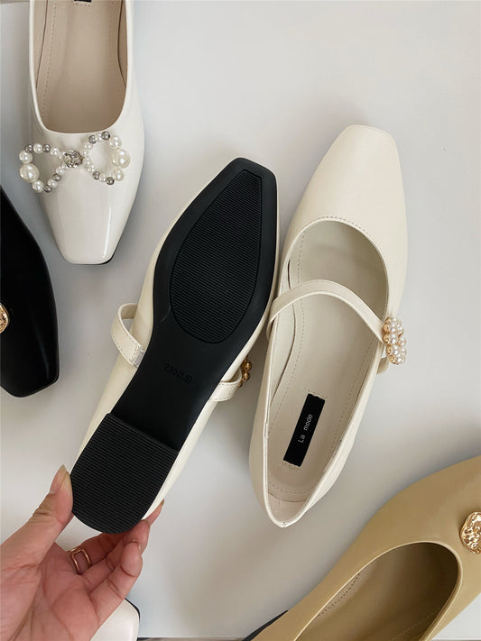 Chaussures femme à bout carré plat, style doux et polyvalent, noir, chaussures de travail