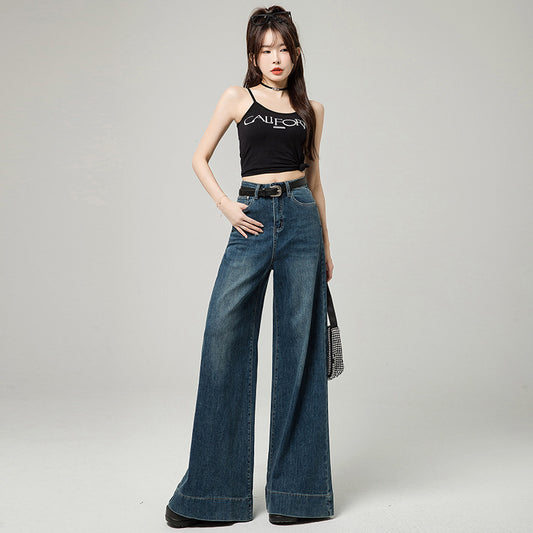Dark Blue Narrow Version Korean Simple High Waist Loose Small Mop Wide Leg Pants